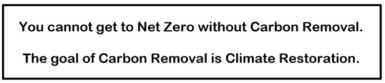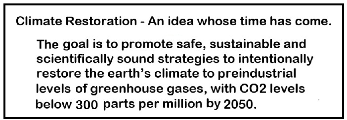 Climate Restoration supports clean renewable energy transition, conservation, recycling and all the strategies identified to achieve "net zero", PLUS restoring a pre-industrial climate to our planet.
